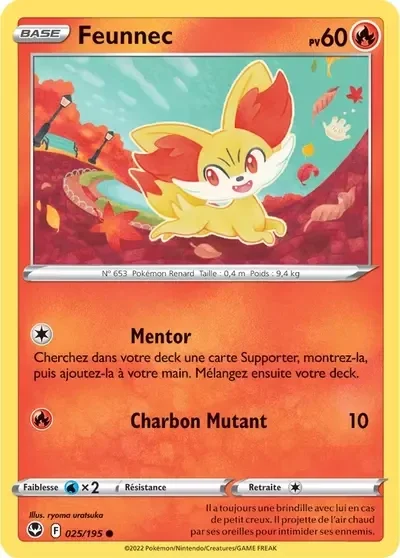 Feunnec Pokémon, carte Pokémon 025/195, Tempête Argentée EB12, Silver Tempest, carte Pokémon feu, starter Kalos, JCC Pokémon